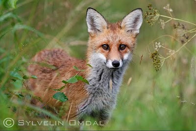 ...ser det ut som denne revungen lurte på der vi sto og studerte hverandre!!! Men så var det jo bare meg:-) Vi lurte hverandre litt både revungen og jeg. Den prøvde nemlig å gjemme seg unna ved å løpe gjennom et rør som gikk under veien jeg sto på...men DET skjønte jeg så jeg løp over og tok imot revungen på den andre siden av veien:-)